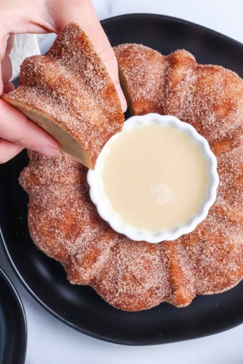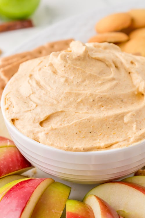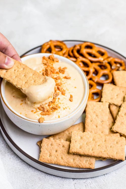 Sweet and simple, A Cookie Named Desire’s caramel apple dip can be ready in 10 minutes. It combines cream cheese, caramel sauce, apple cider, and a bit of vanilla and salt for the perfect dip version of your favorite fall treat.