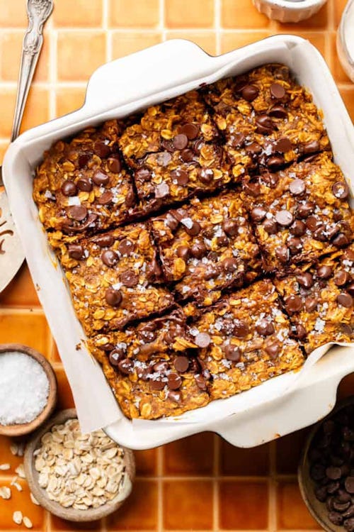 If mixing two things and pouring them into a pan is too much, combine all the ingredients for these pumpkin oatmeal bars in one bowl and pour them into one dish. Bake for 25 minutes and enjoy some pumpkin-spiced deliciousness (thank you, All The Healthy Things).