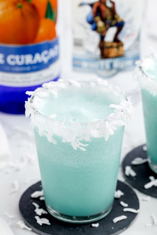 Personally, I swore off blue drinks after one particularly rough hangover in college, but Princess Pinky Girl’s Jack Frost cocktail is admittedly very fun-looking. Just blend your ingredients together, rim your glass, and clink it with a friend’s.