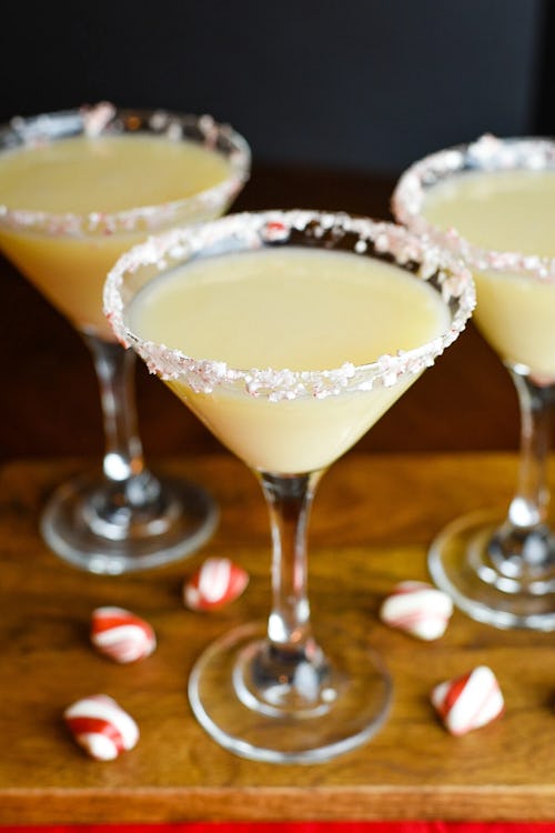 If you want a cocktail that absolutely screams Christmas, then Dude That Cookz’ peppermint cream martini is the drink for you. It’s a delicious mix of peppermint schnapps, white cream liqueur, and vanilla vodka, with the cutest crushed-candy-cane rim.