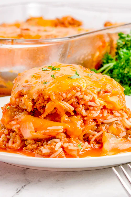 Averie Cooks’ cabbage roll casserole gives you all the flavor of traditional cabbage rolls without the fuss of actually making them into rolls (bless). It’s all the ground beef, cheese, rice, and cabbage in every bite but ready in about an hour.