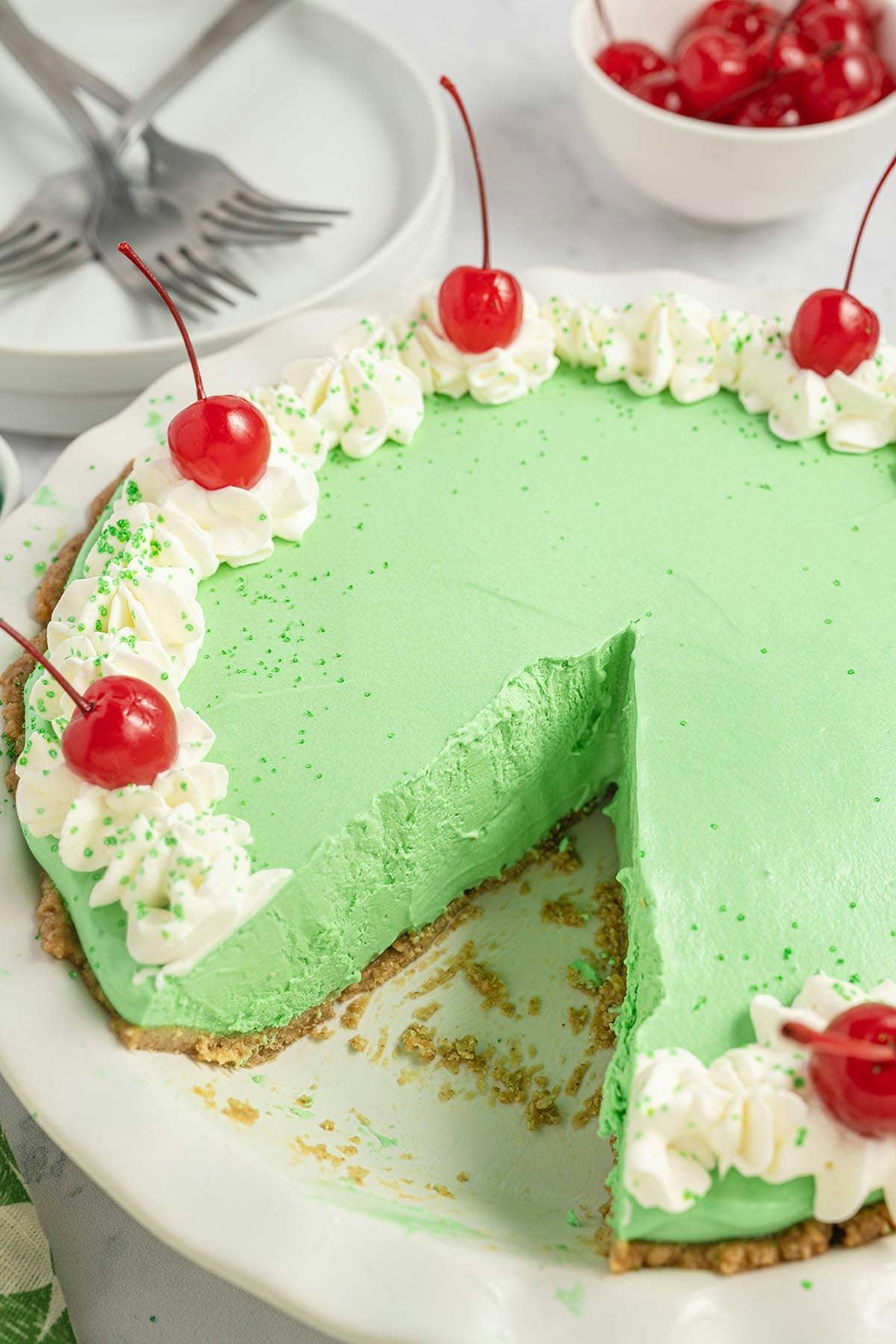 If what you really want is something undeniably green, you need to make Princess Pinky Girl’s Shamrock Shake pie. It captures the flavors of the iconic McDonald’s Shamrock Shake in an easier-to-transport form. It’s a no-bake recipe that requires only eight ingredients, which isn’t bad for a pie!