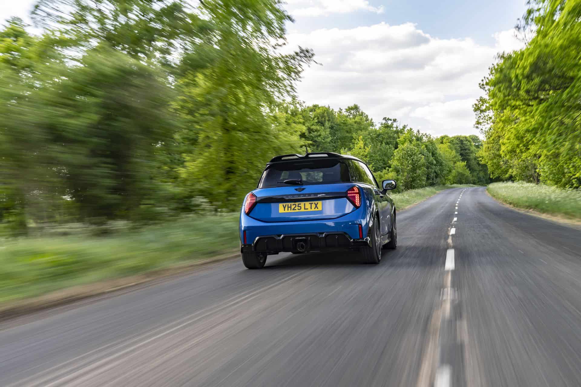 The smaller JCW hatch has a single exhaust tip, or does it? There’s another one hidden underneath the rear bumper. It features a valve that automatically opens above 3,000 rpm. Fun fact: the visible exhaust pipe is the largest in the BMW Group portfolio, though the sound coming out could be a bit louder to better match the car’s sporty character.