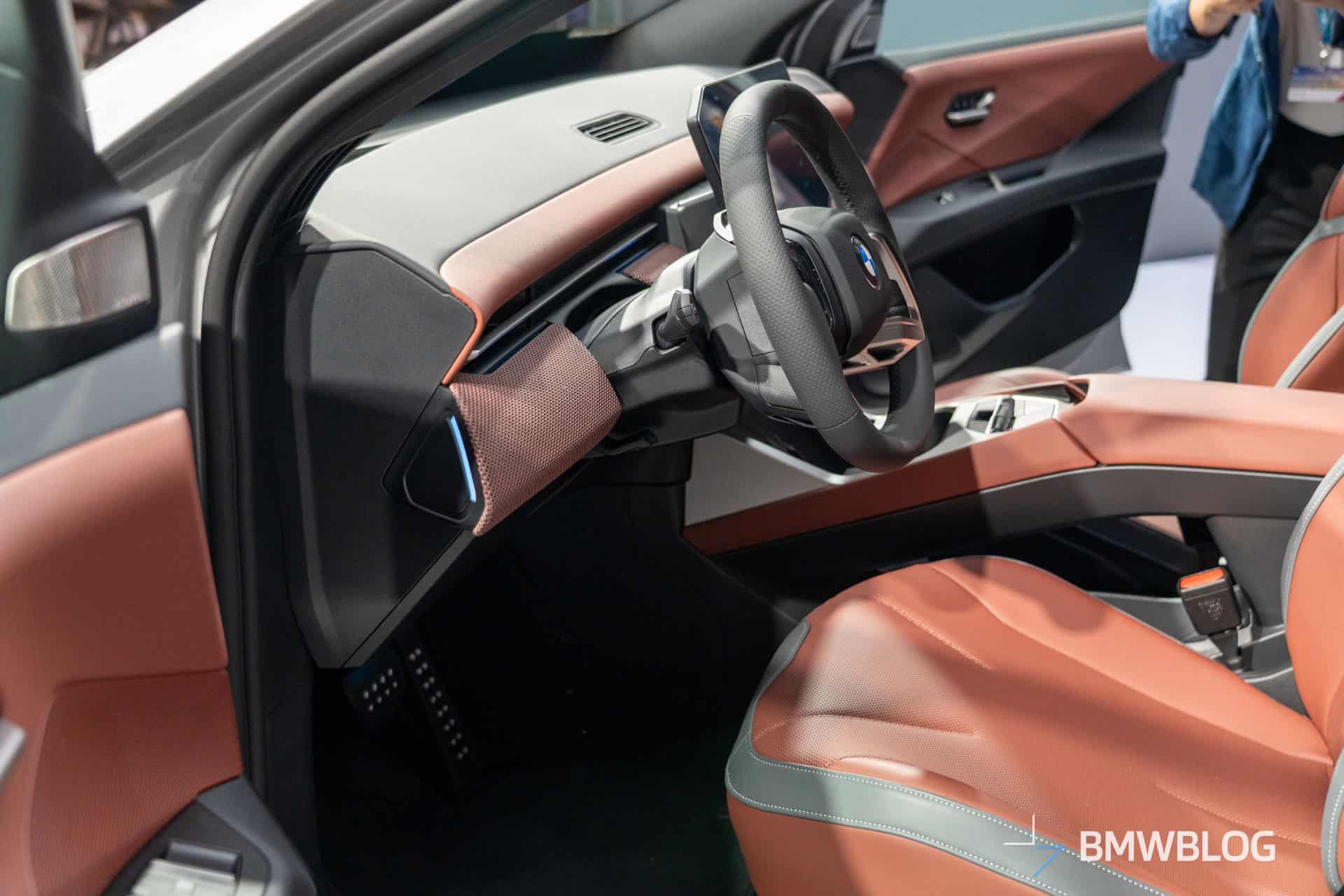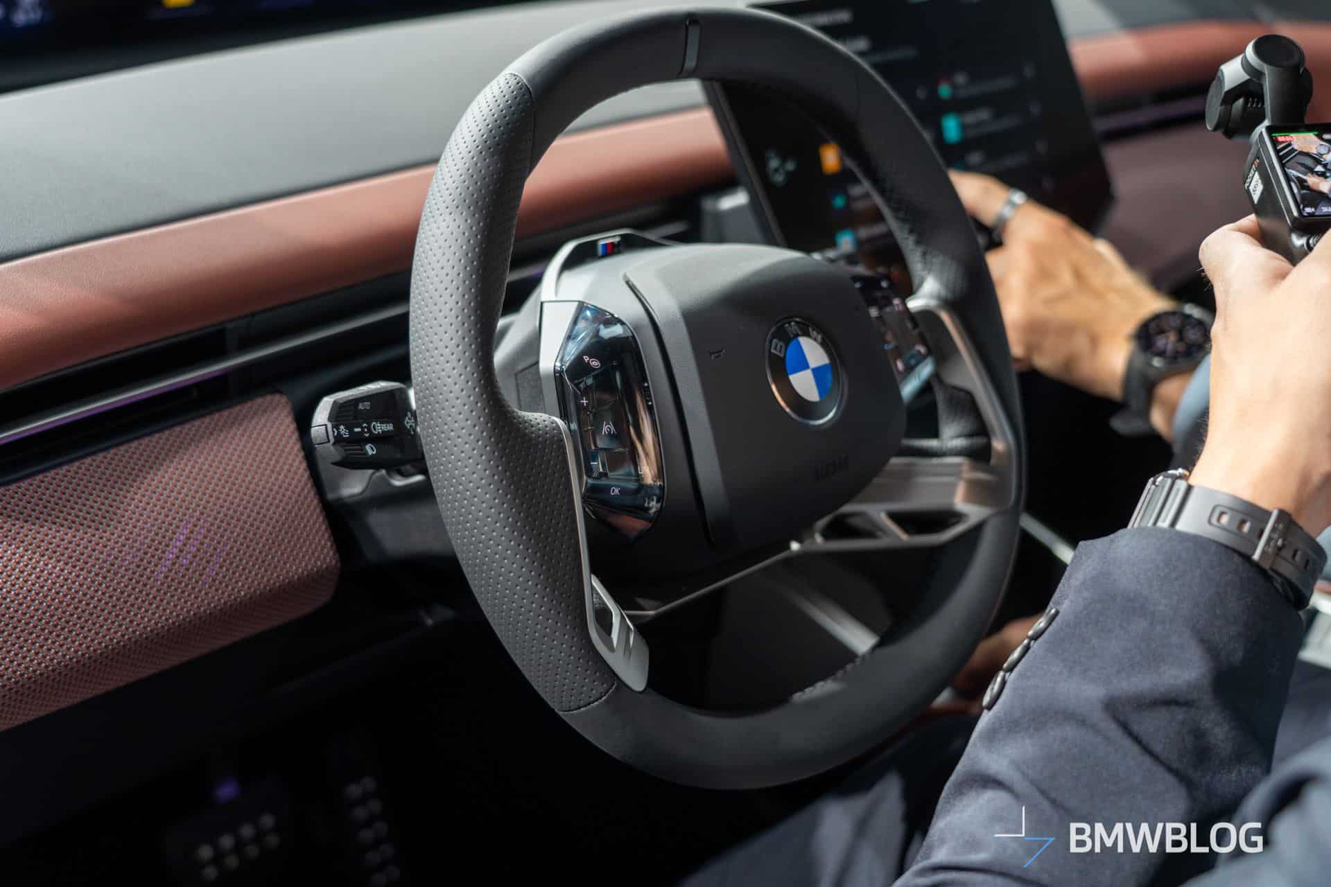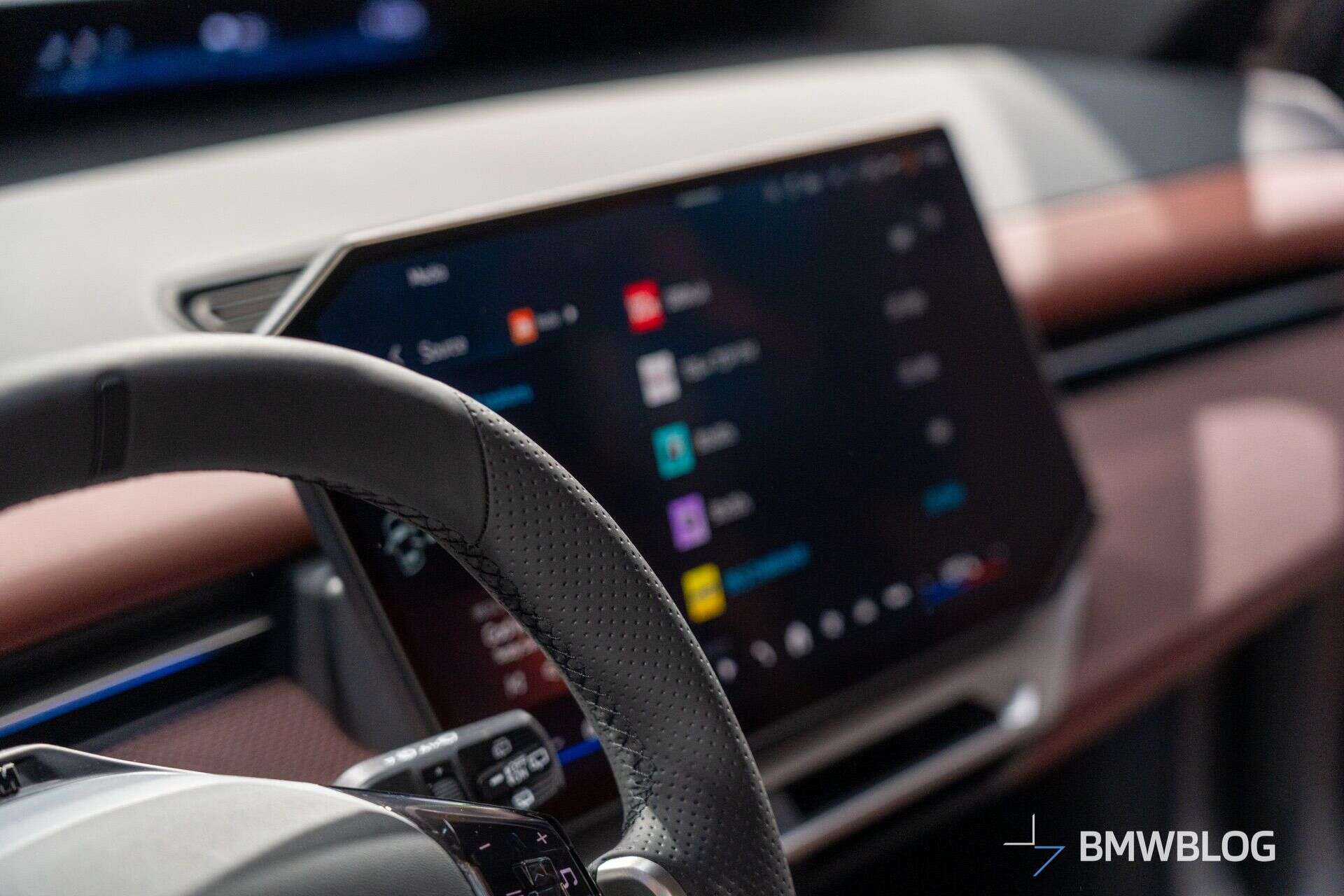 Inside, this iX3 is finished in Castanea Brown. Say what you will about BMW, but the company isn’t afraid to take design risks. The 2026 iX3 looks nothing like its predecessor, especially in the cabin, where just about everything has changed. The quirky steering wheel we first saw on the Vision Neue Klasse concepts is still here, still white. But if you’d prefer a black version with a different layout, you’ve got options.