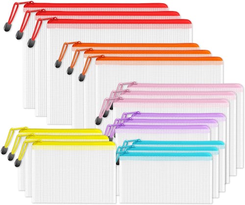 Part of organizing is simply getting similar items into the same container, and these zipper pouches help you do just that. Because they come in six different sizes, they can help you organize basically anything. From tchotchkes and art supplies to pencils and chargers, these plastic pouches are durable, reusable, and such an easy way to sort small things.