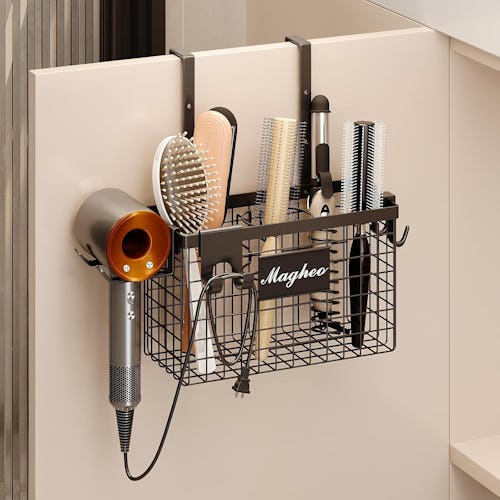 This wire basket mounts to the inside of a bathroom cabinet to store your hair accessories — think: blow dryers, straighteners, brushes, curlers, you name it — so they’re easily accessible but also out of sight and out of mind. What makes it especially clever is that it has a steel wire design that improves ventilation for safer storage of hot tools.