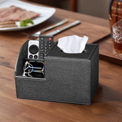 A Faux Leather Tissue Box With Sneaky Built-In Storage
