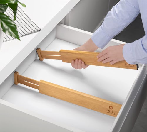 These wooden dividers expand from 17 to 22 inches, instantly creating customizable compartments to get your junk drawer, dresser, or kitchen utensil collection into tip-top shape. They’re spring loaded to stay in place and have padded foam ends that protect your drawers from getting scratched and scraped.