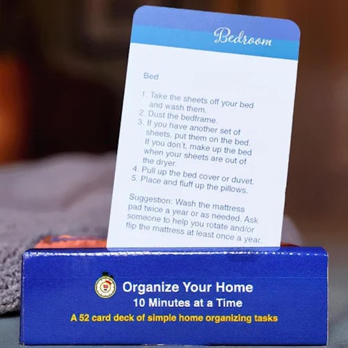 These activity cards are a perfect way to gamify cleaning and make organizing your space so much more fun. Each of the 52 cards features a step-by-step guide to help you tackle one 10-minute task at a time. From cleaning your shower to decluttering your entryway to taking out the trash, these cards break down organizing into actionable tasks to make decluttering way easier.