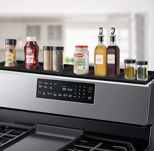 These shelves magnetically attach to the top of your stove’s control panel, giving you a ton of extra storage space to organize all the spices and oils you always reach for during meal prep. They have divided sections for even more organization and raised edges to keep things from falling off.