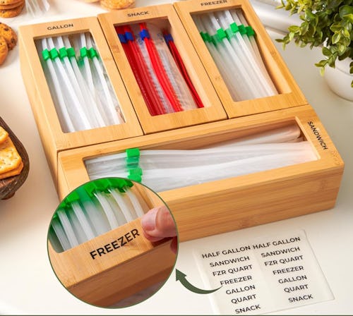 If you want your kitchen drawers to look professionally organized, ditch your plastic bag packaging for these chic wooden organizers. They come in two different sizes to fit gallon bags, snack bags, sandwich bags, quart bags, and more. Plus they even come with prewritten labels so you always know which bag to reach for.