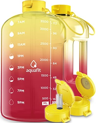 AQUAFIT 1 Gallon Water Bottle With Times To Drink – 128 oz Water Bottle With Straw – Motivational Water Bottle – Large Water Bottle – Sports Water Bottle With Time Marker – Gym Water Jug 1 Gallon