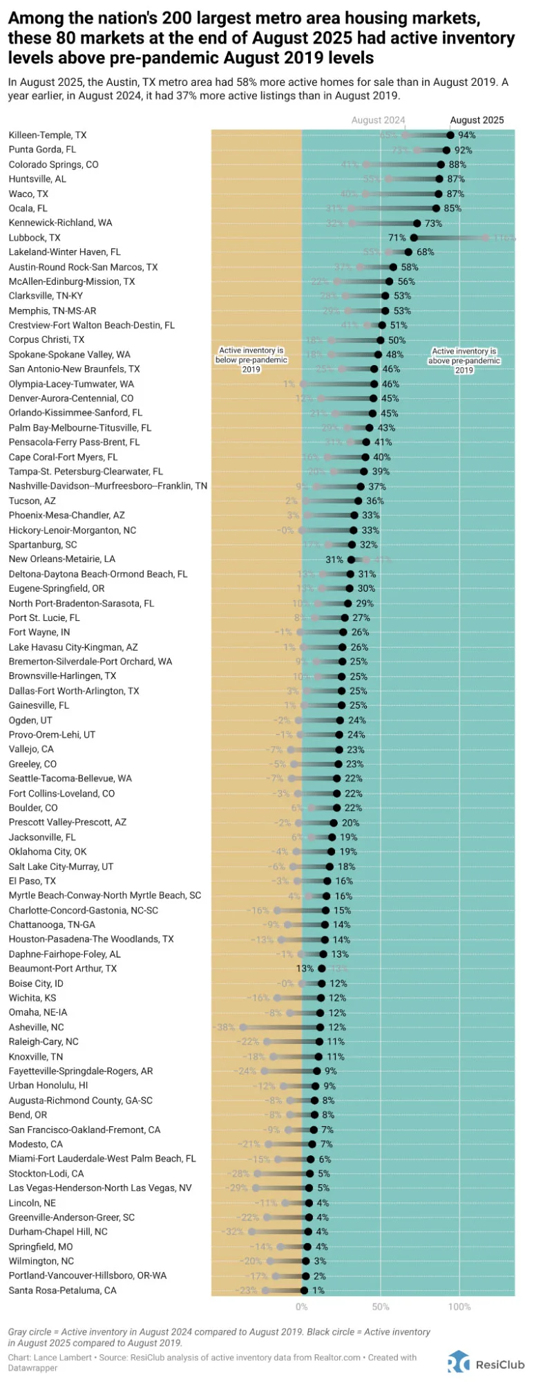 Now, at the latest reading for the end of August 2025, 80 of the 200 markets are above pre-pandemic 2019 inventory levels.