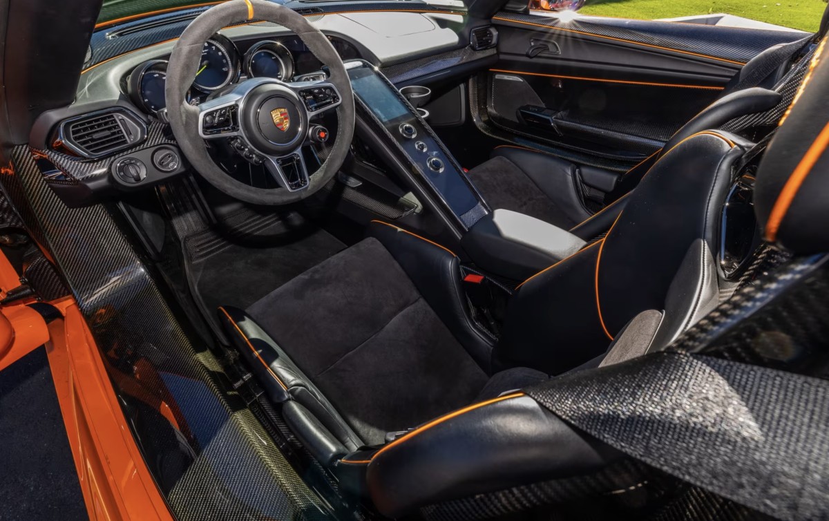 You’ll never lose this 918 Spyder in the parking lot, thanks to its vivid Pure Orange paintwork. This paint-to-sample option cost a staggering $21,000 when the car was purchased new in 2014 and is the only 918 Spyder in this finish.Â