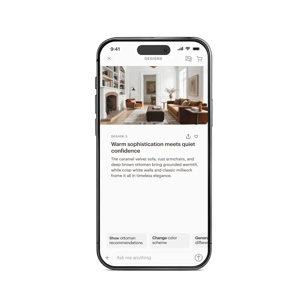 “You’ve got products, you can shop those products, you can say ‘I want to swap this product for that product’ and sort of see that in the space,” Mayer says. “It’s a really great tool to play and tinker and maybe even design your home. It’s not as fully featured and fully figured as a design experience would be, but it’s quite a big step above some of the LLM models that are out there, just in terms of your ability to execute on the design.”
