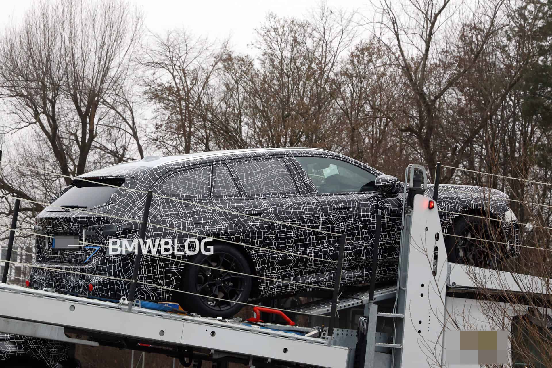 Seen here is the more practical Touring, resting on a car trailer alongside the new iX3. Despite the full-body camouflage, it’s clear this prototype doesn’t match the one spotted a few months ago. The front grille no longer merges with the headlights as it did on the earlier test car. Instead, BMW appears to have opted for a more restrained facelift of the current model.