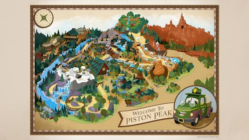 While Disney resorts has a Cars themed world at Disneyland’s California Adventure — Radiator Springs, which is inspired by the town from the first Cars movie — Piston Peak National Park is entirely new and entirely different.