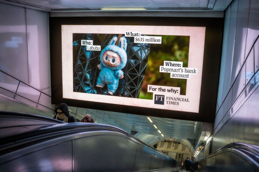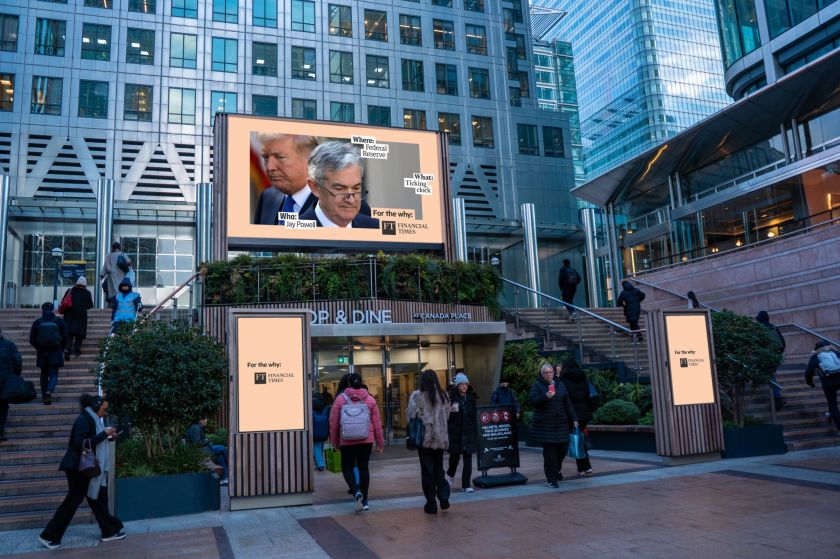 What makes the campaign work creatively is its structural elegance. Each execution presents a news story using only basic facts; identifying the who (Jay Powell, Labubu), the what (a ticking clock, $635 million), and the where (Federal Reserve, Popmart’s bank account). Then comes the reveal: “For the why: FT Financial Times.”