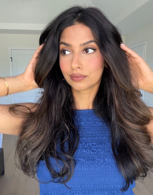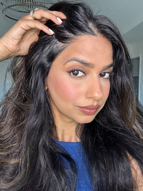 For Moorjani, the Keratin Root Touch-Up Spray is a quick, one-and-done solution for concealing grays. In addition to providing instant, seamless coverage, it also helps give the hairline a thicker, fuller appearance. The formula is scalp-friendly, with no irritation, and leaves no stiffness or stickiness behind. The spray comes in three shades—Black, Light Brown, and Dark Brown—with Black being her perfect match. “I just shake the can, hold it about six inches from the areas with the most grays, and spray for a couple of seconds,” she explains. She loves how evenly it applies and how easily it washes out with her next shampoo. “Many times I see my grays coming in but I don’t have the time to cover them up, so this is perfect for those days, or to use on-the-go whenever I need.”