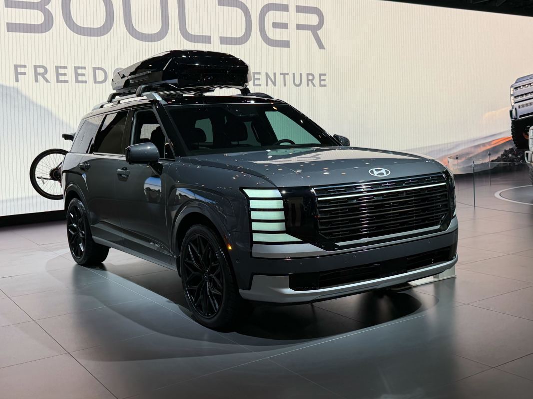Hyundai gave a hint of what’s to come during a preview at the New York International Auto Show on Wednesday, the automaker pulling the wraps off the Boulder SUV. Officially, it’s just a concept vehicle, but the reality is that Boulder is a thinly disguised version of a new model the automaker is working up for launch later this decade, confirmed Sang-Yup Lee, Executive Vice President and Head of the Hyundai and Genesis Global Design Center, in an interview with Autoblog. “It’s pretty much” production-ready.