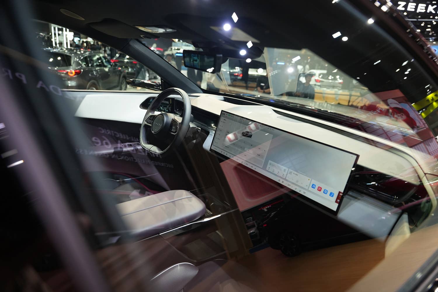 Mazda has always had uncluttered dashboards with integrated gauges, but now, that’s changing. Stenuit argues that having a screen extend in front of the passenger brings the passenger into the driving experience, adding that instead of having any gauges in the CX-6e, Mazda has installed a large head-up display, which he says is “much more important than an instrument cluster.” Basically, if the important driver info can be clearly conveyed through a high-quality head-up display, says Stenuit, “you don’t need gauges because you can concentrate better on the road.”