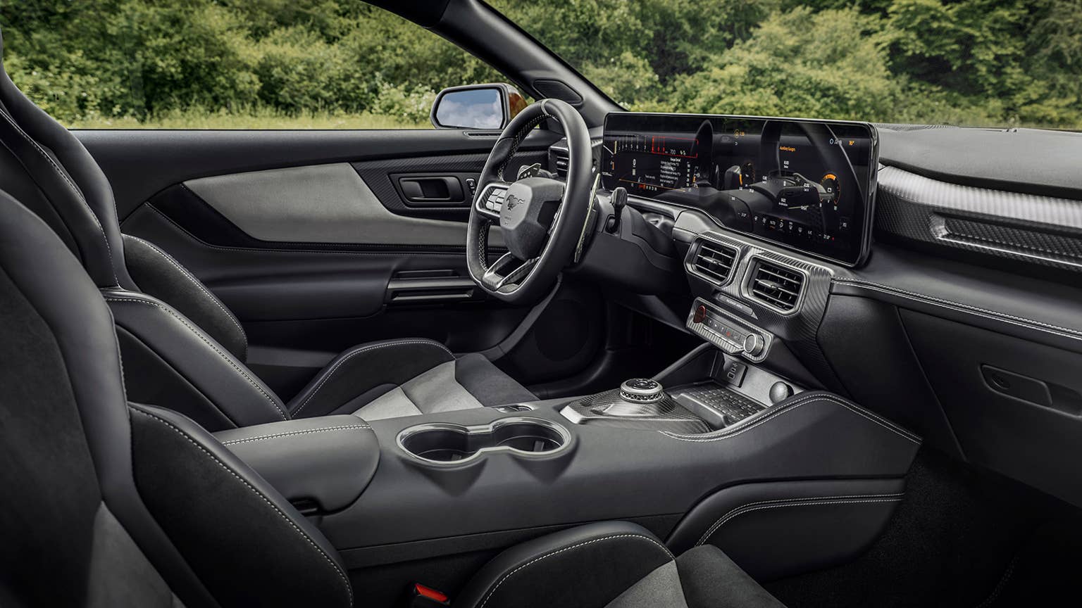Whereas regular Mustangs use struts at the front and integral-link independent suspension at the back, the GTD throws all of that away for a far racier setup. The struts have been swapped out for double-wishbones with a wider track. As for the rear, it gets an active and adaptive pushrod suspension that wouldn’t look out of place in a competition vehicle. Ford is particularly proud of it, too, by placing a window where the back seats were supposed to be so its proud owners can show it off or see it work.