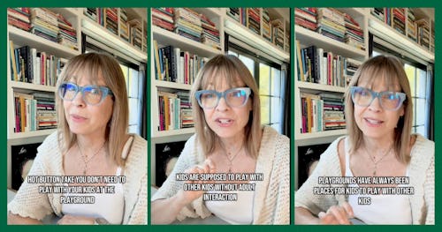 “Hot button take: you don’t need to play with your kids at the playground,” she declares.