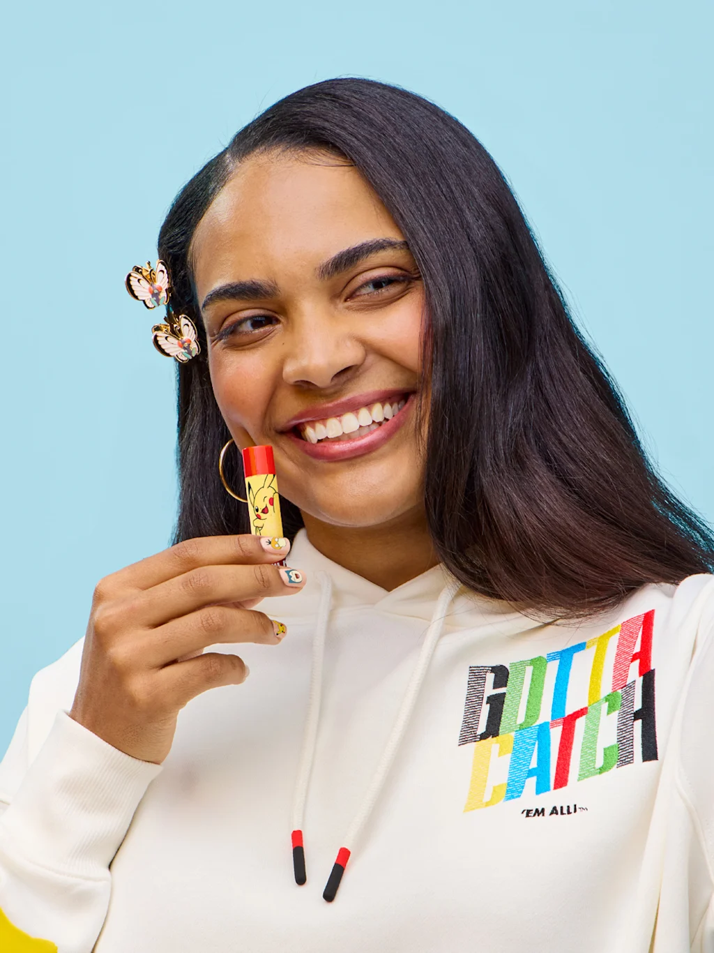 The products and their accompanying campaign lean into the era’s aesthetic, too. The red, blue, and yellow color scheme that defined the first Pokémon generation is all over the collection, along with holographic packaging details reminiscent of holofoil Pokémon cards.
