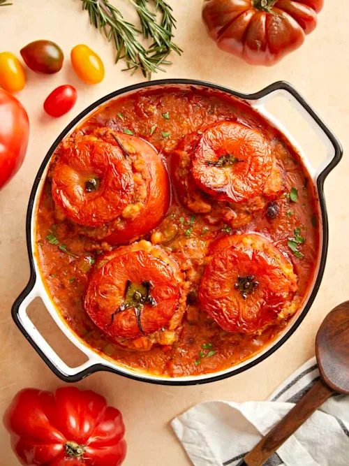 This dish is for the tomato lovers only: white bean stuffed tomatoes, courtesy of Budget Bytes. It’s meant to be served over pasta or rice so that when you tuck into those tender tomatoes, there’s something to catch all the delicious sauce. This would be such an impressive dinner-party entrée.