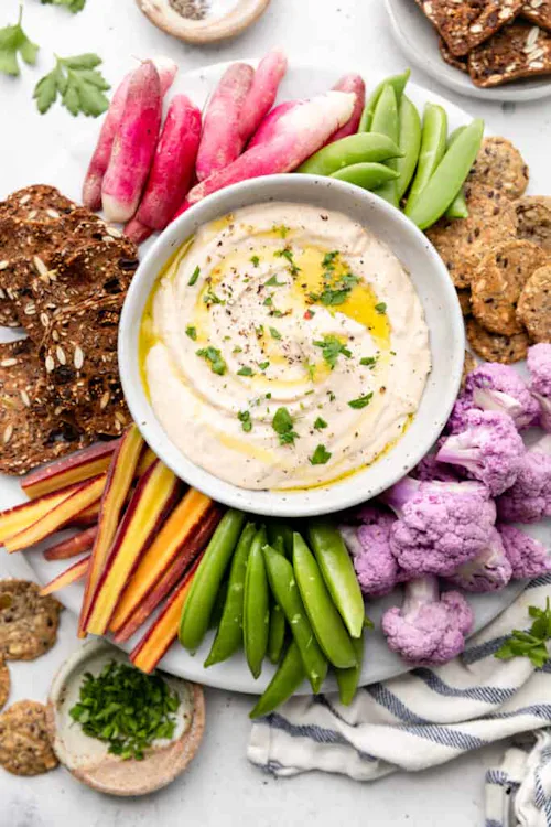 All The Healthy Things’ creamy white bean dip is such a satisfying afternoon snack, or a crowd-pleasing appetizer. It takes about 10 minutes to throw together. Then just surround it with your favorite dippers and crudités.