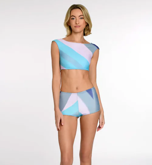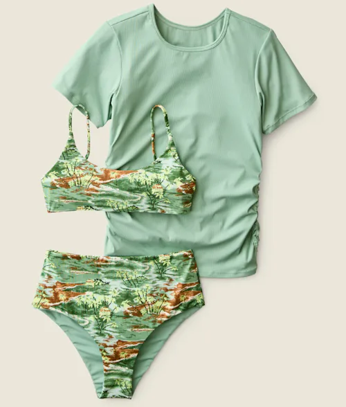 How cute is this hula print? Crave Designs has so many cute suits like these, and many of them can be mixed and matched easily, which I love. Their suits are also sustainably made and have SPF ratings, two more reasons to love the suits and the company. — Sarah Aswell