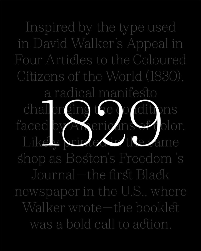 Some typefaces carry weight beyond their visual characteristics. We Appeal, from the newly launched WeType foundry, is explicitly designed as an act of historical preservation and cultural reclamation. Based on characters from David Walker’s “Appeal in Four Articles to the Coloured Citizens of the World”—an 1830 abolitionist manifesto—this revival serif transforms a pivotal document in American history into contemporary typographic form.