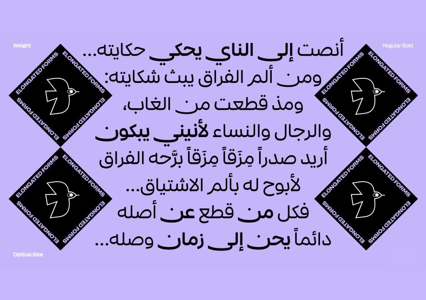 What’s impressive is Setar’s technical sophistication in handling the potential pitfalls of Arabic type. Larger teeth often create problematic character clashes, but Setar contains comprehensive contextual alternates ensuring these collisions don’t occur (unless deliberately desired). For final forms with bassinets—seen, sad, noon characters—the typeface includes versions with elongated tails, addressing practical justification needs whilst enabling dramatic stylistic options.