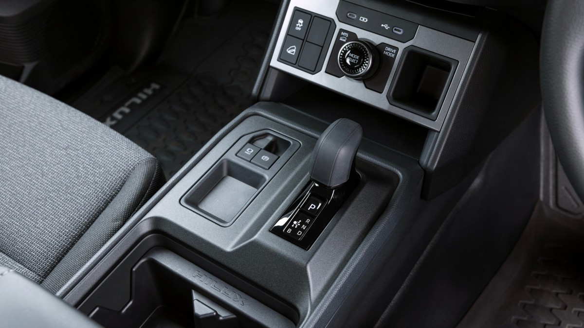 Hilux BEV SR customers also get a fabric upholstery, all-weather floor mats, dual-zone automatic climate control, power windows, smart entry and start, and a 1500W inverter in the center console box that can power small appliances.