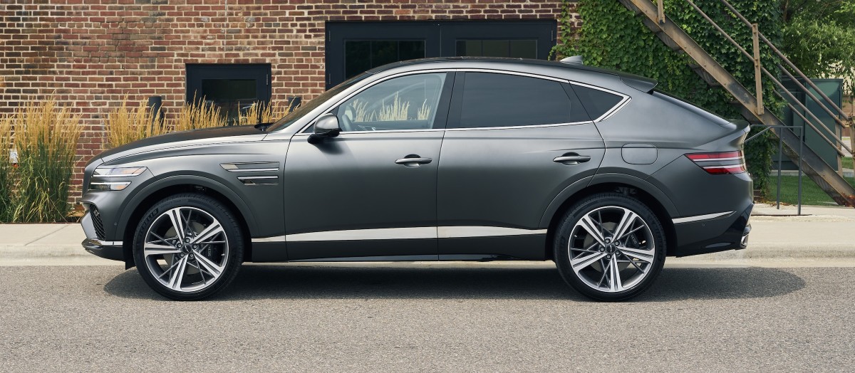 - Driving Range: Up to 671 miles per tank with the standard version, or 592 miles with the GV80 Coupe Hybrid on 20-inch wheels