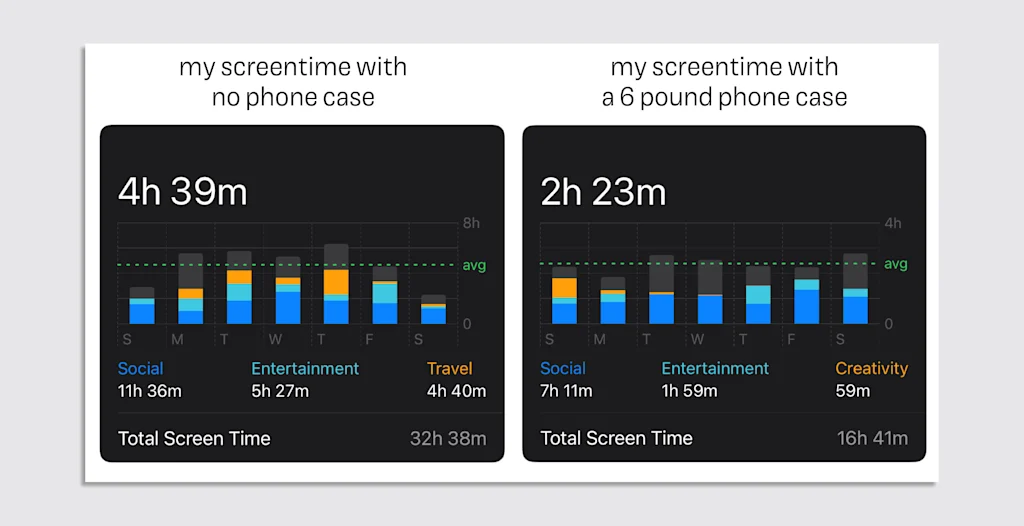 Creative minds have thought up all kinds of solutions to this conundrum, including an app that forces you to literally touch grass before you scroll, a phone case that doubles as a tiny screen, and an app that uses an animated bean character to guilt-trip you out of going on social media. The 6 Pound Phone Case is the newest addition to this wacky smartphone detox lineup—and it might just be the most effective.