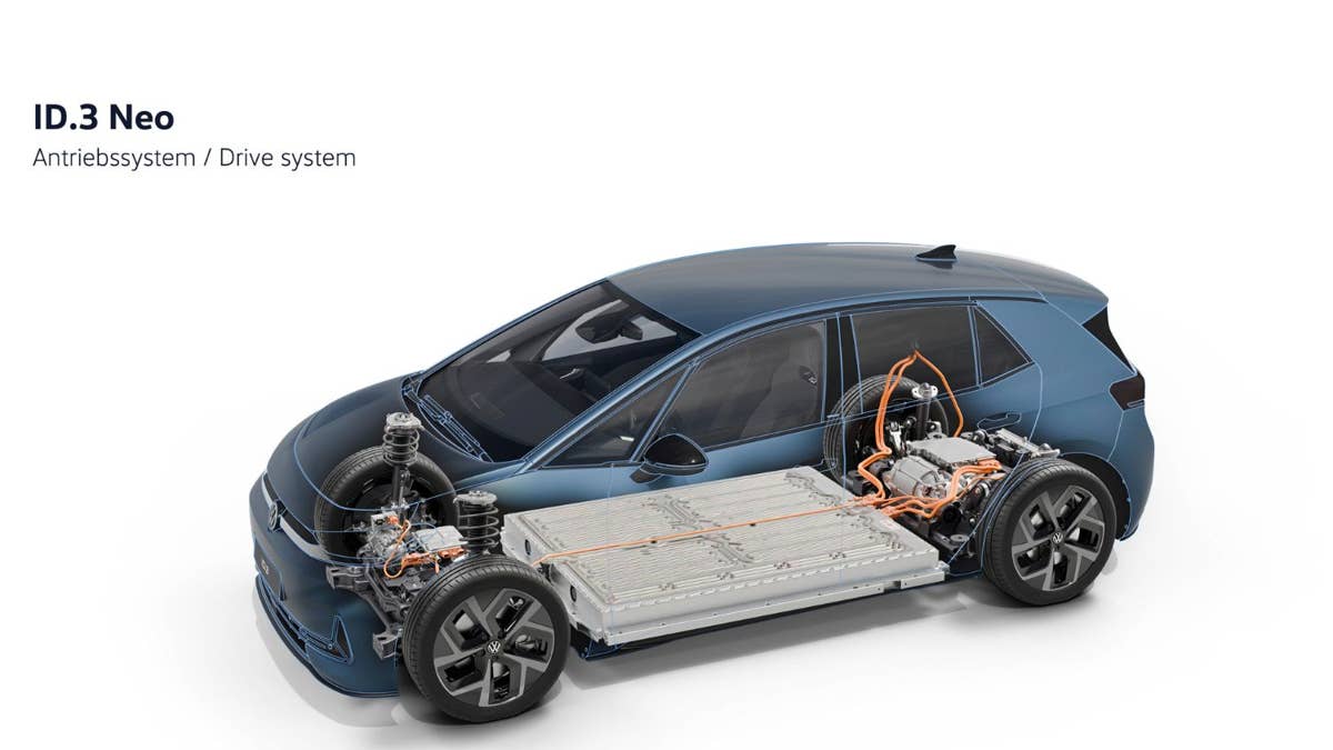 Of course, there are stacks of advanced driver-assist systems on board, but there’s also the enhanced Connected Travel Assist, which gives it greater semi-autonomous driving capabilities. VW also said it improved its one-pedal driving mode for a smoother and more linear experience. A significant option for the ID.3 Neo is Vehicle-to-Load capability, which allows the car to power certain household items outdoors or during emergencies.